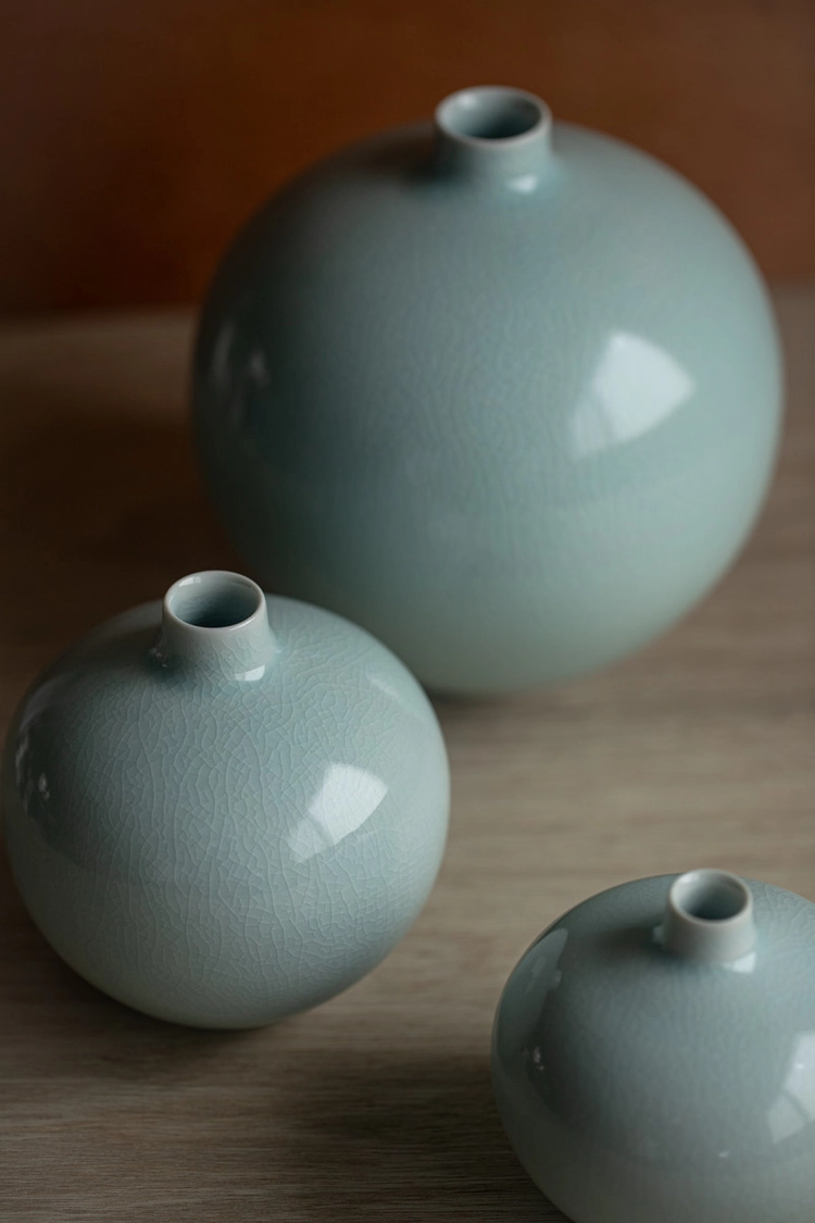 청자 달항아리 3점이 있습니다.