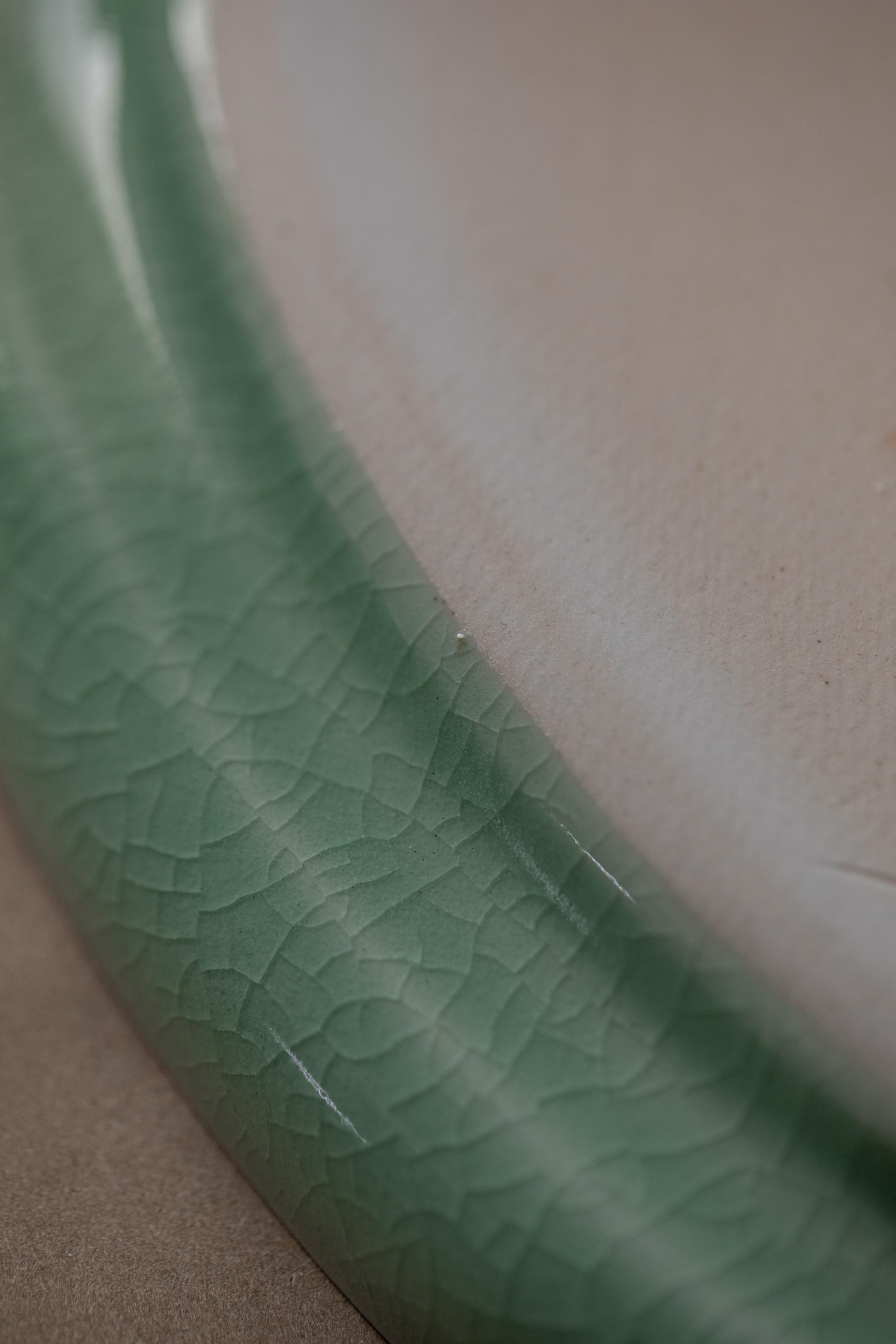 - 자연의 소재로 만들어진 반투명 청자 유약으로 유약의 편차· 흐름·맺힘·색감·두께·광택 등이 기물마다 조금씩 차이가 있습니다.