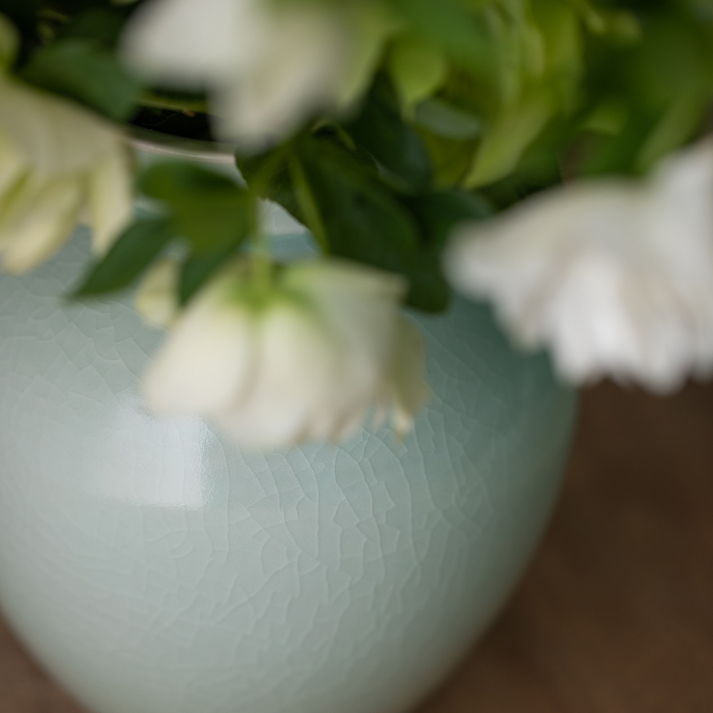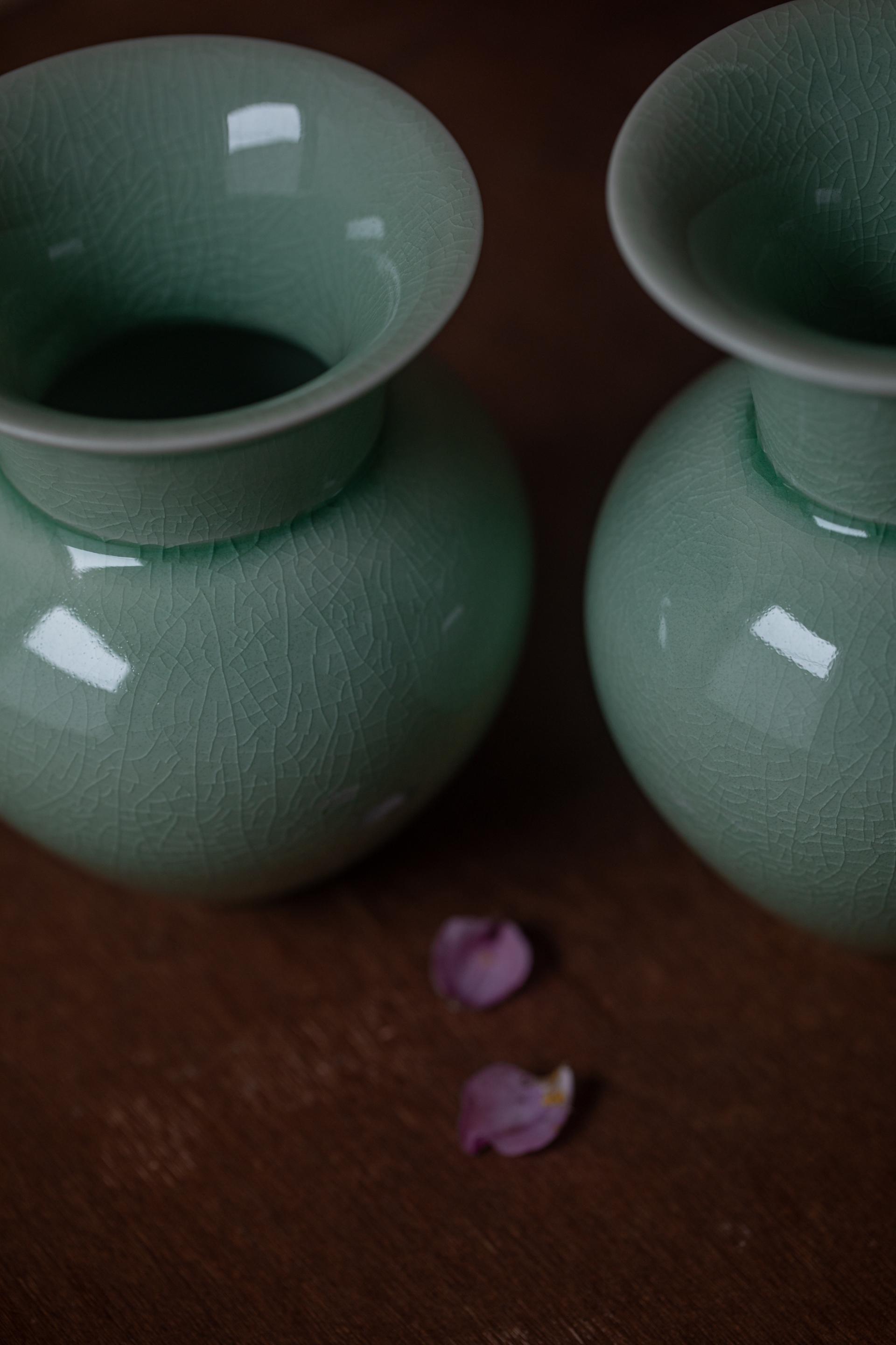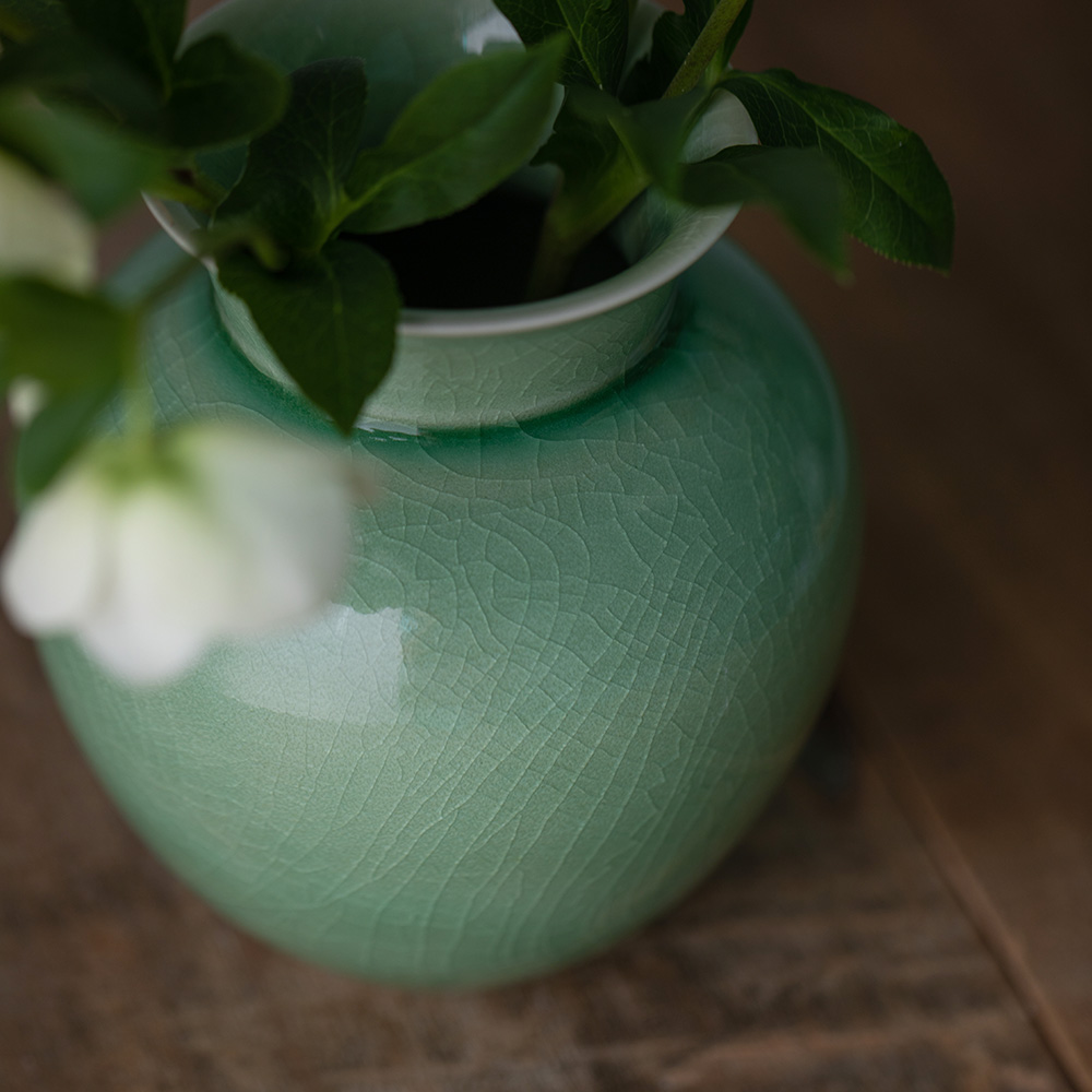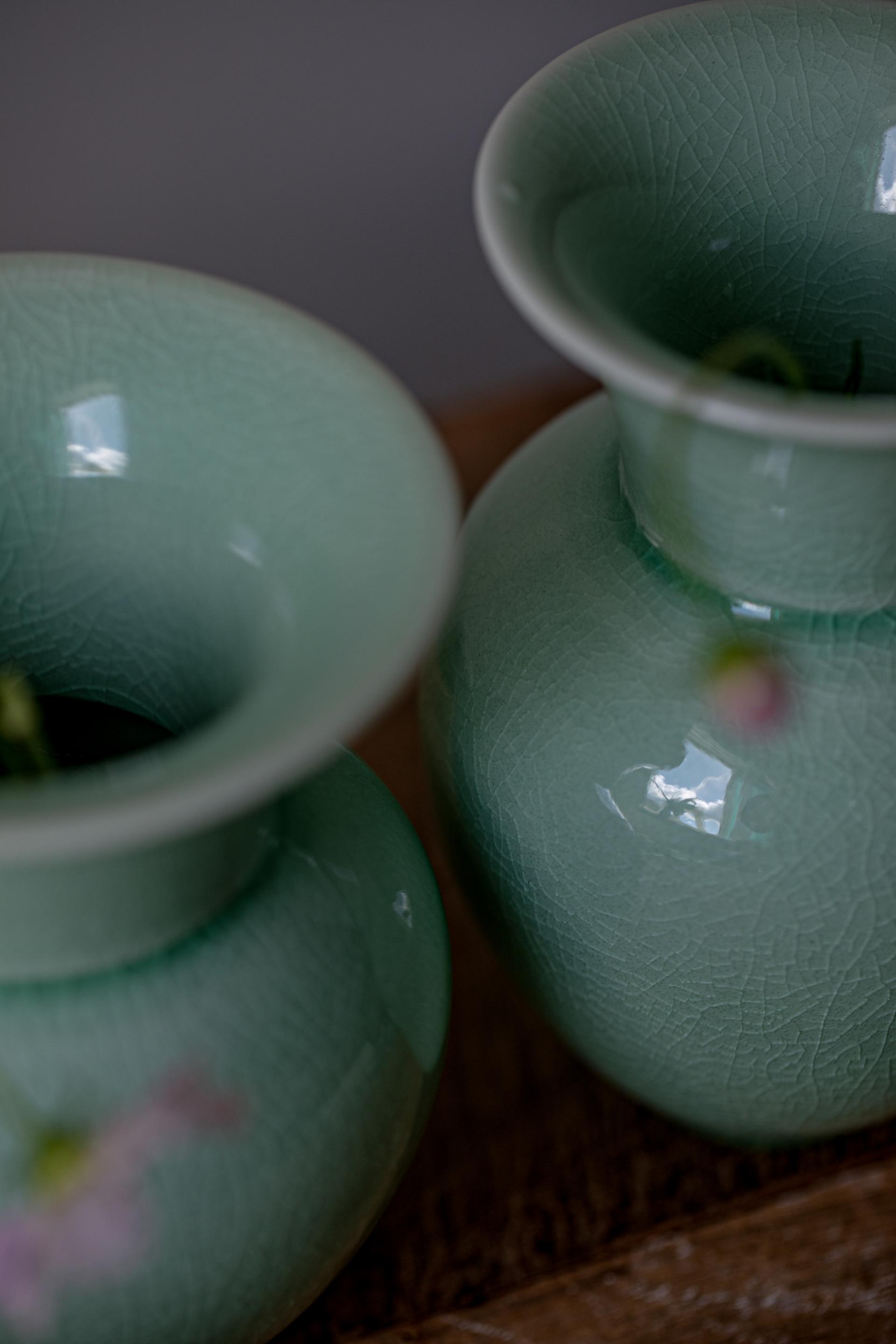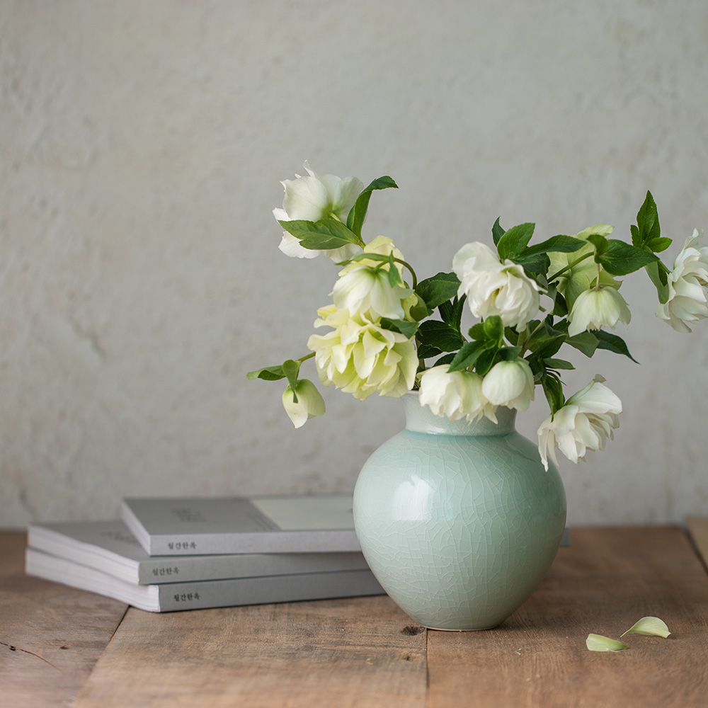 - 자연의 소재로 만들어진 반투명 청자 유약으로 유약의 편차· 흐름·맺힘·색감·두께·광택 등이 기물마다 조금씩 차이가 있습니다.