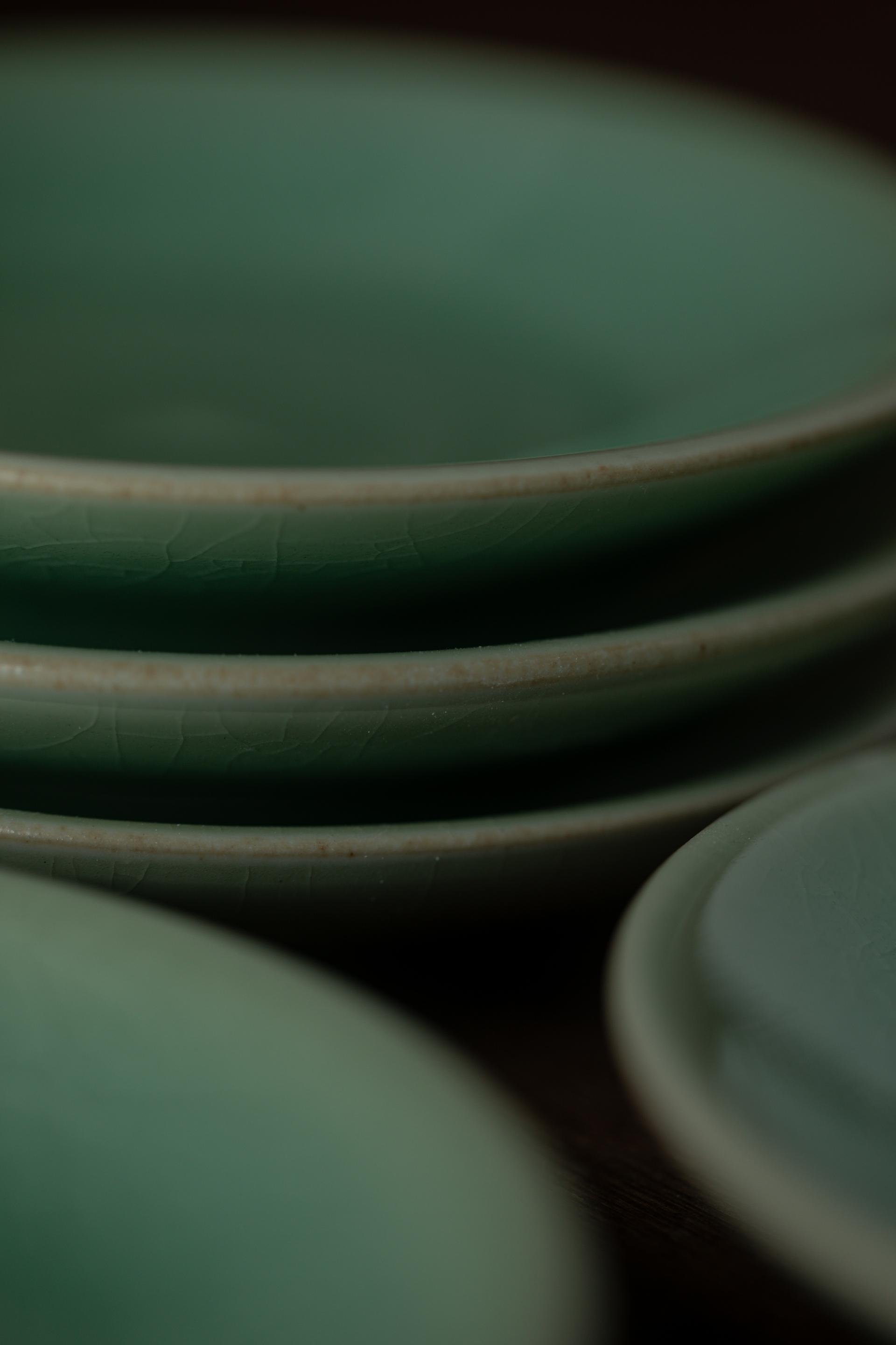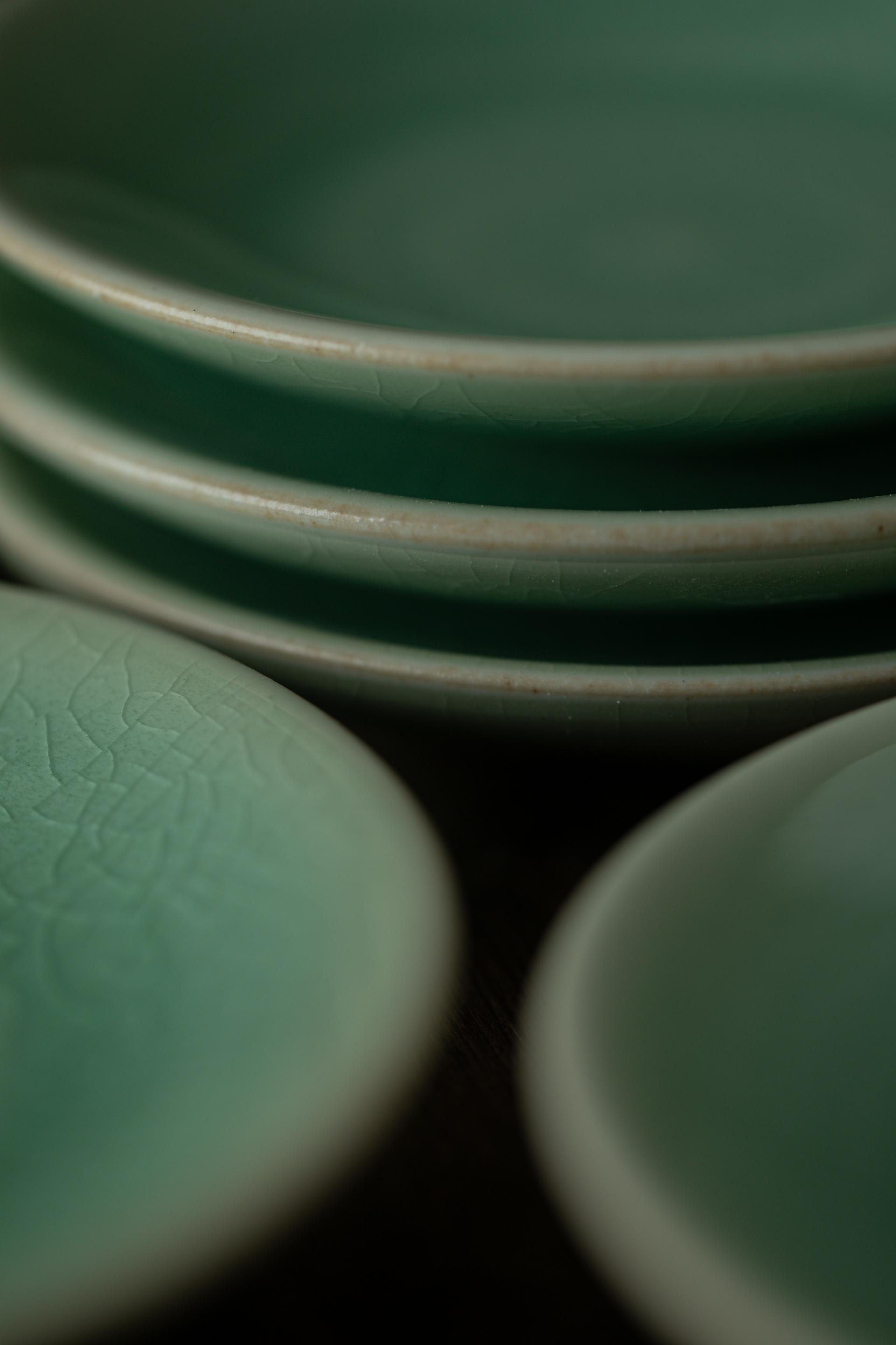 - 자연의 소재로 만들어진 반투명 청자 유약으로 유약의 편차· 흐름·맺힘·색감·두께·광택 등이 기물마다 조금씩 차이가 있습니다.