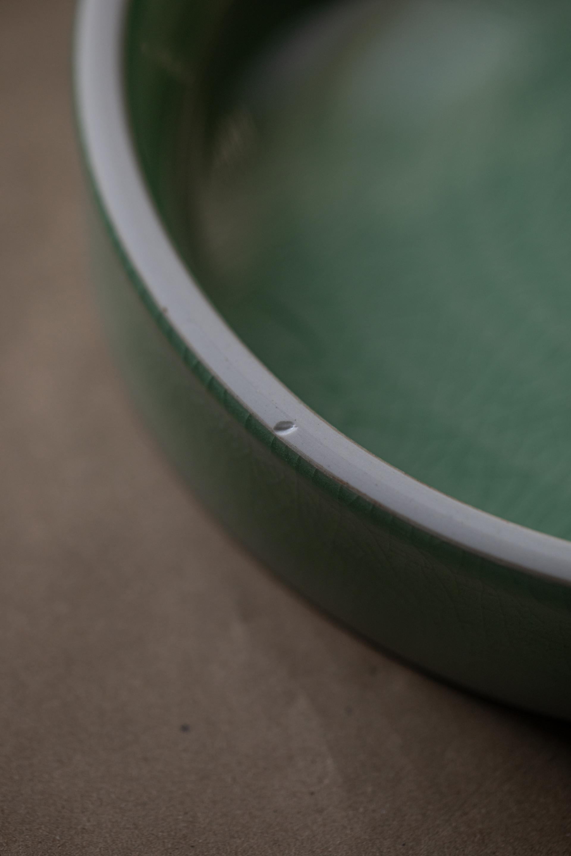 - 자연의 소재로 만들어진 반투명 청자 유약으로 유약의 편차· 흐름·맺힘·색감·두께·광택 등이 기물마다 조금씩 차이가 있습니다.